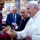 Папата Франциско се ракуваше со многу верници за време на мисата во Рим во неделата и им дозволи да ги бакнуваат неговите раце и покрај пандемијата...