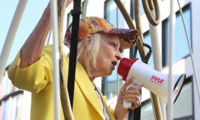 Британската модна дизајнерка Вивиен Вествуд симболично се заклучи во огромен кафез за птици пред судот „Олд Бејли“ во Лондон во знак на поддршка на основачот на...