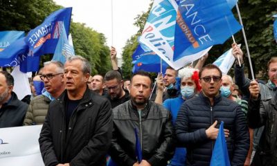 Француската полиција протестира во голем број градови против владината забрана на зафатот на задушување, техника на физичко спречување за ограничување на движењето на едно лице, а...