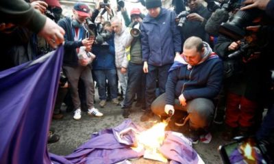 Приврзаниците на брегзитот денеска го запалија знамето на Европската Унија пред Даунинг стрит во центарот на Лондон. Други насобрани луѓе им се потсмеваа на проевропските демонстранти...