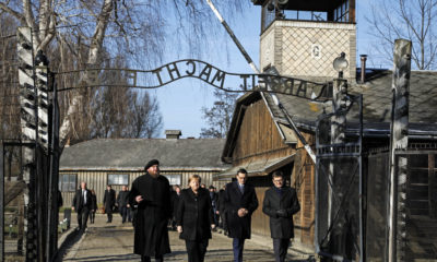 Германската канцеларка Ангела Меркел и полскиот премиер Матеуш Моравjeцки положија цвеќе на Ѕидот на смртта во поранешниот нацистички логор на смртта Аушвиц-Биркенау и им оддадоа почит...
