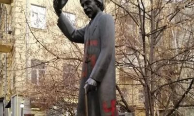 Неидентификувани лица нацртале кукести крстови на споменикот на истакнат еврејски автор во Киев. Главниот рабин во Украина, Моша Рувен Азман, објави фотографии од споменикот на Шолем...