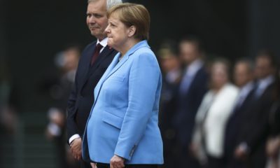 Германската канцеларка Ангела Меркел повторно беше снимена додека неконтролирано се тресеше. Таа стоеше до финскиот премиер Анти Рине, кого го прими денеска на гости во Берлин...