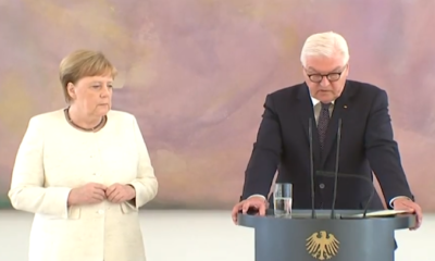 Германската канцеларка, Ангела Меркел, денеска повторно изгледаше како да не ѝ е добро и се тресеше за време на церемонија во Берлин во сцена слична како...