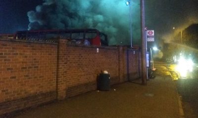 Во гаража за автобуси во југоисточниот дел на Лондон рано утрово избувна пожар. Во гасењето на пожерот во кој горат автобуси ангажирани се 60-ина пожарникари. #Orpington...