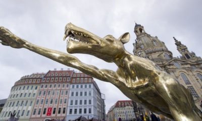 Во земјата каде што нацистичките симболи се нелегални, глетката на статуи од волци што отпоздравуваат со нацистички поздрав изгледа премногу невообичаено. Сепак, десет бронзени статуи се...