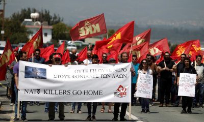 Околу 350 демонстранти од комунистичките организации на Кипар, се собраа пред влезот на британската воздухопловна база, во знак на протест против воздушните напади на САД, Велика...