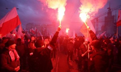 Десетици илјади националисти излегоа на марш низ улиците на Варшава за да го одбележат Денот на незавиноста на Полска, фрлајќи црвени димни бомби и носејќи транспаренти...