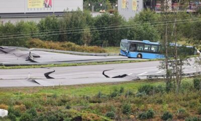 Голем дел од автопатот во југозападна Шведска се урна во текот на ноќта, поради што три лица со полесни повреди се пренесени во болница, соопшти денеска...
