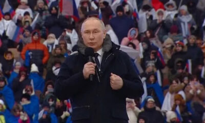 Во Москва илјадници луѓе се собраа на стадионот „Лужники“ на митинг-концерт по повод годишнината од војната и Денот на бранителите на татковината. На концертот кус говор...
