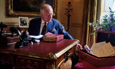 Кралот Чарлс за првпат е фотографиран со таканаречената црвена кутија во која британскиот монарх добива владини документи. Фотографија на кралот како ги презема своите службени должности...