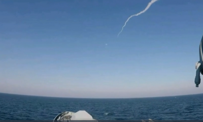 Руското Министерство за одбрана објави снимка на која се гледа како екипажот на фрегата на Црноморската флота кај западниот брег на полуостровот Крим пука од украинското...