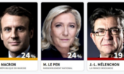 Емануел Макрон води во првиот круг од претседателските избори, според првичните проценки, надминувајќи ја за неколку процентни поени лидерката на крајната десница, Марин Ле Пен, со...