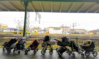 Хуманитарци оставија бебешки колички на полската граница. Пшемишл, Полска, 2 март (Francesco Malavolta/AP)
