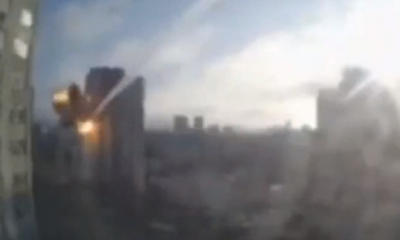 Станбена зграда во близина на аеродром во Киев била погодена од проектил или ракета рано утрово, а сликите од местото на настанот покажуваат голем удар на...