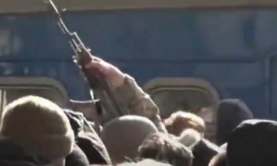 Украинските војници испукаа неколку истрели во воздух за да го спречат стампедото на главната железничка станица во Киев додека илјадници луѓе се обидоа насилно да влезат...