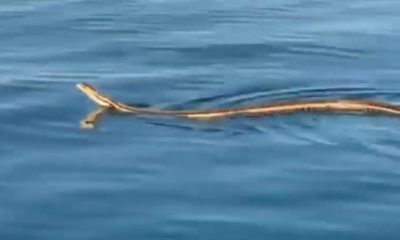 На социјалните мрежи во Хрватска се појави снимка на змија која плива во морето и се обидува да се качи на брод меѓу островите Какан и...