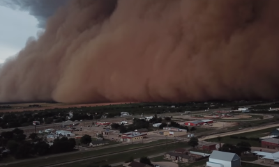 Американец со дрон сними застрашувачко видео од песочна бура во округот Коахома, Тексас. На видеото се гледа како песочната бура полека се шири и го голта...
