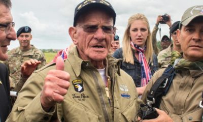 Американскиот ветеран Том Рајс (97) денеска го повтори скокот со падобран кој го имал пред 75 години за време на нападот на сојузниците во Нормандија. Тој...