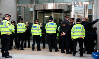 Активисти за животната средина, кои во последните неколку дена протестираат во Лондон, се залепија со дланките еден со друг правејќи синџир пред лондонската берза, а некои...
