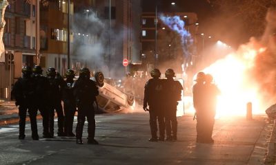 Демонстрантите палеа автомобили и фрлаа молотови коктели од покривите на четврттата последователна ноќ на немири во францускиот град Гренобл предизвикани од смртта на двајца тинејџери во...