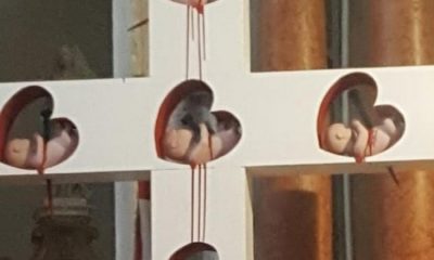 На олтарот на жупаниската црква „Светиот крст“ во Водице поставен е крст со крвави фетуси. Во крстот беа издлабени пет дупки во облик на срце, а...