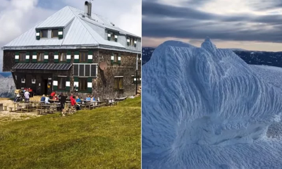 Хеликоптерска снимка од планината Ајзенерцер Рајхенштајн на австриските Алпи прикажува планинарски дом кој исчезнал под дебел слој снег. Обилните снежни врнежи го прекриле објектот на три...