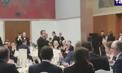 Руската новинска агенција ТАСС објави видеоснимка од свечениот ручек кој вчера во Белград беше приреден во чест на посетата на рускиот претседател, Владимир Путин. На видеото...