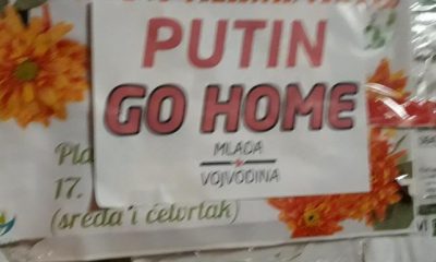 Во пресрет на посетата на рускиот претседател, Владимир Путин, на Србија, во неколку градови на Војводина се појавија натписи на кои на англиски јазик пишува „Путин,...