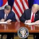Американскиот и јужнокорејскиот претседател, Доналд Трамп и Мун Џае-ин, потпишаа договор за слободна трговија. Трамп договорот го нарече историска пресвртница во трговијата. Тој посака нови преговори...