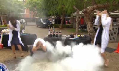 Австралиската водителка на утринска програма, Наташа Белинг, за малку што не настрада, кога емисијата изгуби контрола, во моментот додека нејзиниот гостин, Џејкоб Стриклинг, позната ѕвезда на...