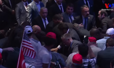 Масовна тепачка го прекина говорот на турскиот претседател, Реџеп Таип Ердоган, во хотел во Њујорк кога еден од присутните извикал: „Ти си терорист. Губи се од...