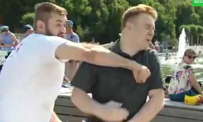 Руски новинар доби тупаница во лицето додека во живо известувал од традиционалната прослава на падобранците во Москва. Никита Развозхајев, репортер на каналот НТВ, додека известувал од...