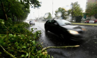 Во вчерашното страшно невреме што го зафати Загреб, жена останала прикована за сообраќаен знак, додека околу неа летале гранки, стебла од дрвја и силен ветер.