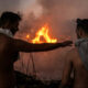 Сите полицајци се засолниле и набргу потоа пожарот почнал. Едно лице излегло од шаторот и легнало на земјата.