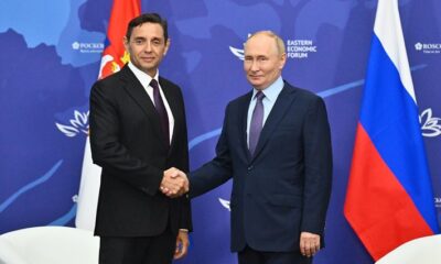 Тој тврди и дека Русија ја поддржува, како што наведе, борбата на Србија против она што претседателот Александар Вучиќ и највисоките државни функционери го нарекуваат обоена револуција бидејќи суштината на меѓународното право е секој да има право на свој пат.