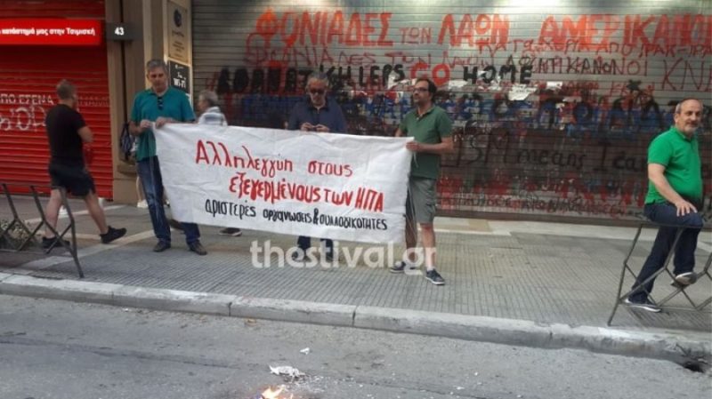 Грчките левичари во Солун го запалија американското знаме пред конзулатот на САД, тврдејќи дека тоа го прават во солидарност со „американските бунтовници“, пренесува „Прото Тема“.