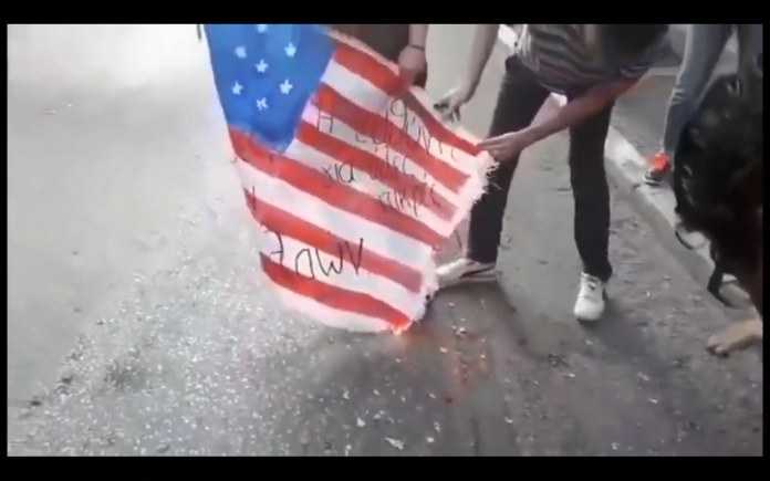 Грчките левичари запалија американско знаме во Солун