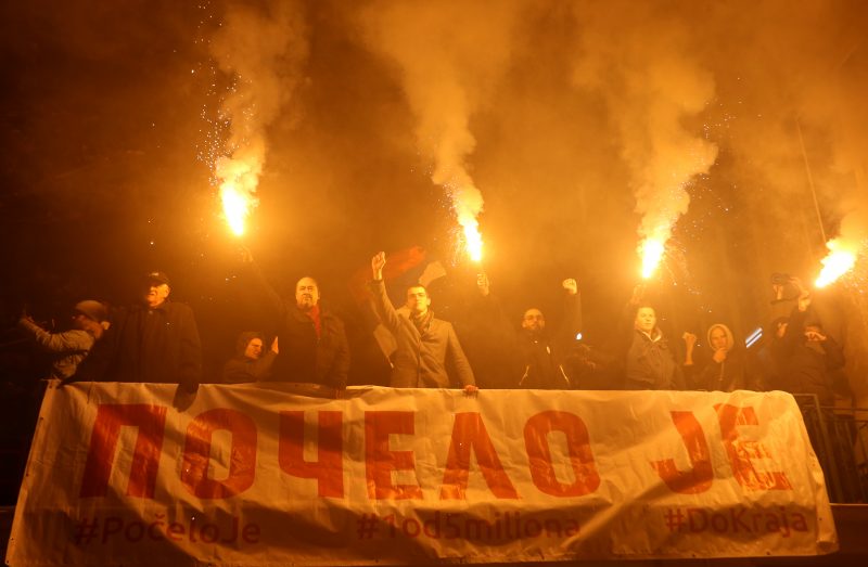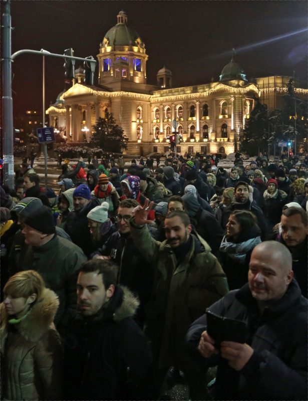 Тие носеа транспаренти со натписи „Нѐ има пет милиони“, „Ние сме со народот, не со сегашните или поранешните крадци“ и „Разбуди се Србијо“, пренесе новинската агенција „Бета“.