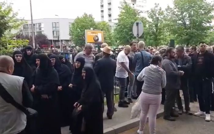 Покрај митрополитот Амфилохиj и монахињите, пред судот почна да се собира и толпа народ.