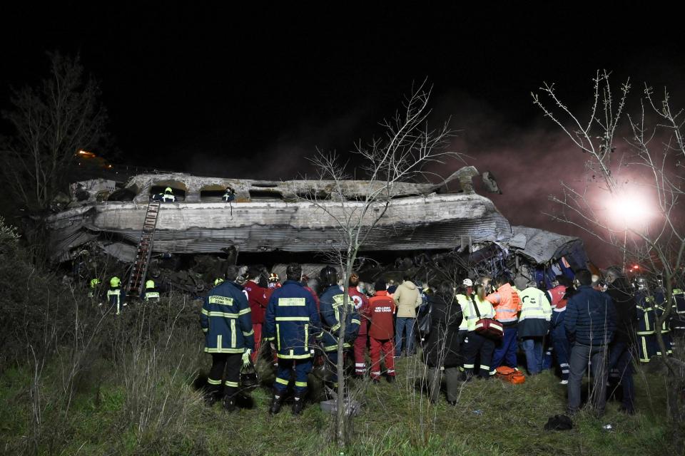 Спасувачите ги пребаруваат остатоците од возот што тлеат. Во блискиот град Лариса, десетици луѓе се собраа во локалната болница чекајќи вести за своите најблиски.