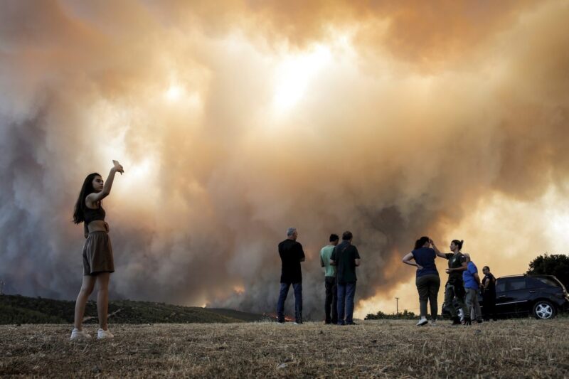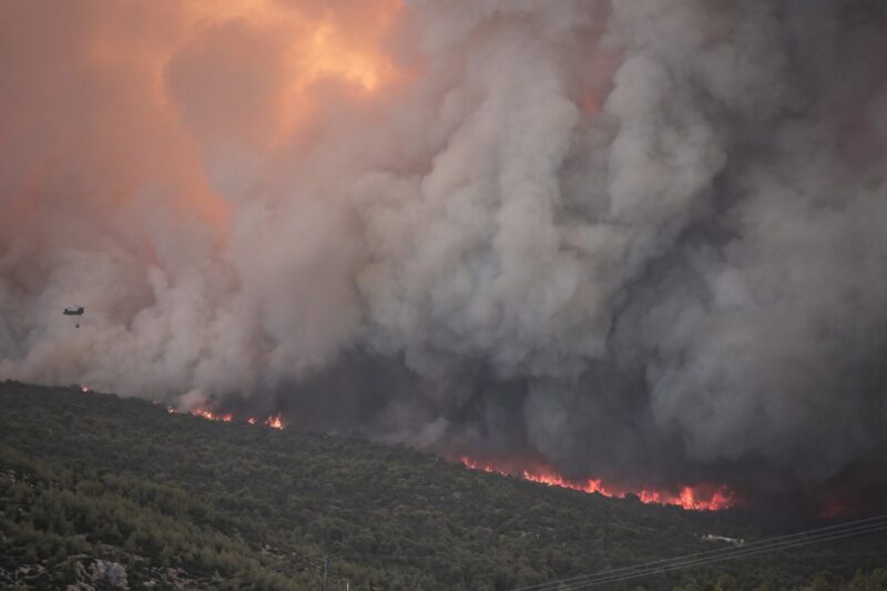 „Ова е тежок ден. Пожарникарите се справуваат со повеќекратни пожари и се борат со пламената стихија во многу зони во областа на Атина“, изјави портпаролот на противпожарната служба Јанис Артопиос.