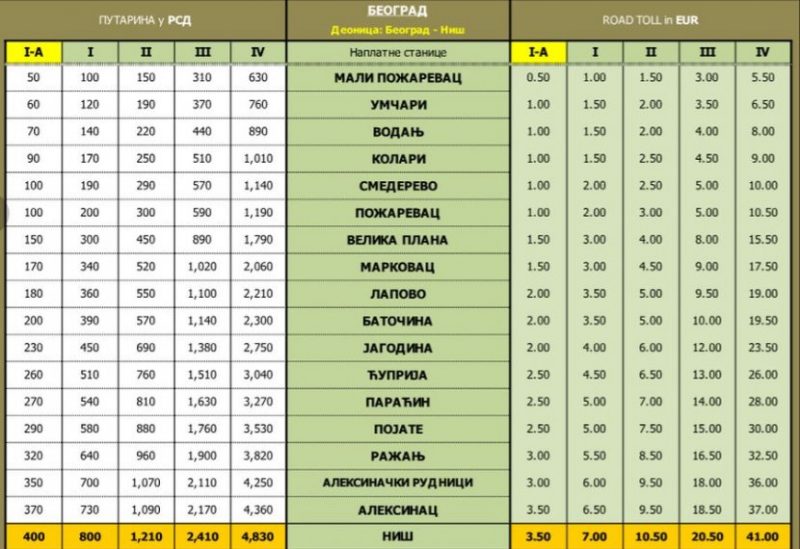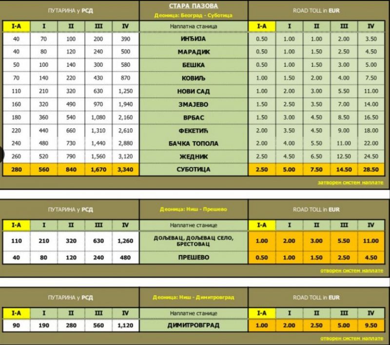 ЈП „Путеви Србије“ ја информира јавноста дека со одлуката за измена и дополнување на одлуката за висината на посебната такса за користење на јавниот пат, неговиот дел и патниот објект – патарина, е извршено усогласување на девизниот ценовник за патарина со важечкиот курс на еврото.