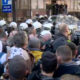 На почетокот на видеото се гледа како еден човек куца, како да е ранет, по што неколку полицајци трчаат кон шаторите и се слушаат истрели.