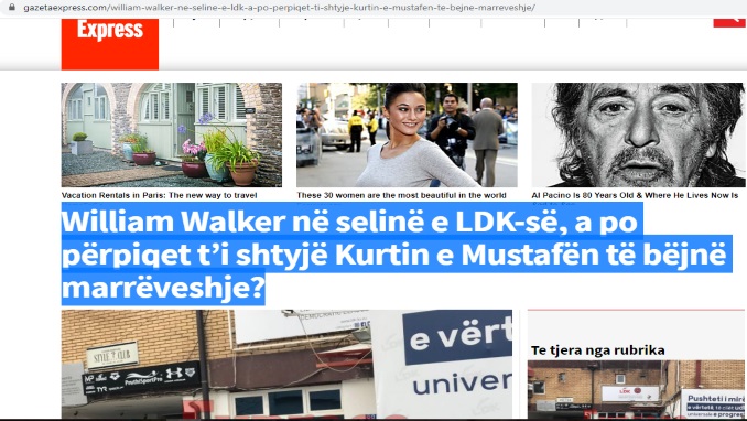 „Газета“ пишува и дека Вокер дошол во ДСК за да разговара со Иса Мустафа за преговорите за коалициска влада со Аљбин Курти и Самоопределување. Поранешниот американски дипломат, кого медиумите го поврзуваат со ЦИА, пристигна во Косово на покана на Беџет Пацоли, кој пред два дена на „Фејсбук“ ја објави нивната заедничка фотографија.
