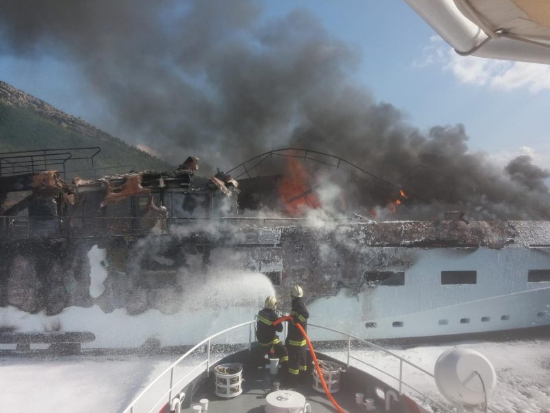 На луксузната јахта „Канга“, долга 40 метри, укотвена меѓу островите Маслиново и Пелешац, изби пожар во утринските часови.