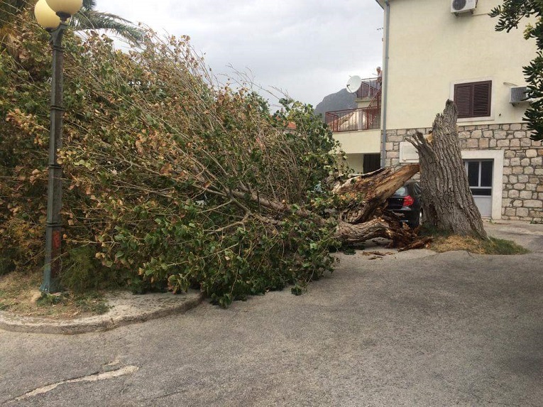 Бурата крши гранки и корне дрвја, пишува „Далмација денес“. Taка, невремето искорна цело дрво во Каштел Шучурац, а искорнати дрвjа има и на Марјан во Сплит.