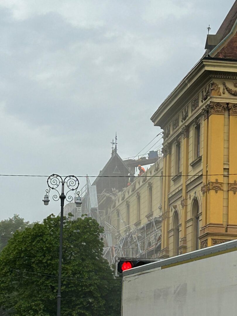 Се урнаа скеле и дел од ѕид од зграда во центарот на Загреб, јавуваат загрепските пожарникари.