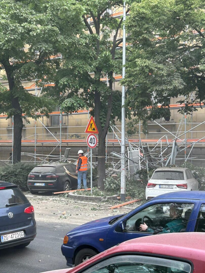 По пристигнувањето на местото на настанот, било утврдено дека на тротоарот паднало градежно скеле со материјал, а оштетени се и автомобили. Скелето било долго 20 метри, пишува „Јутарњи лист“ споделувајќи фотографии.