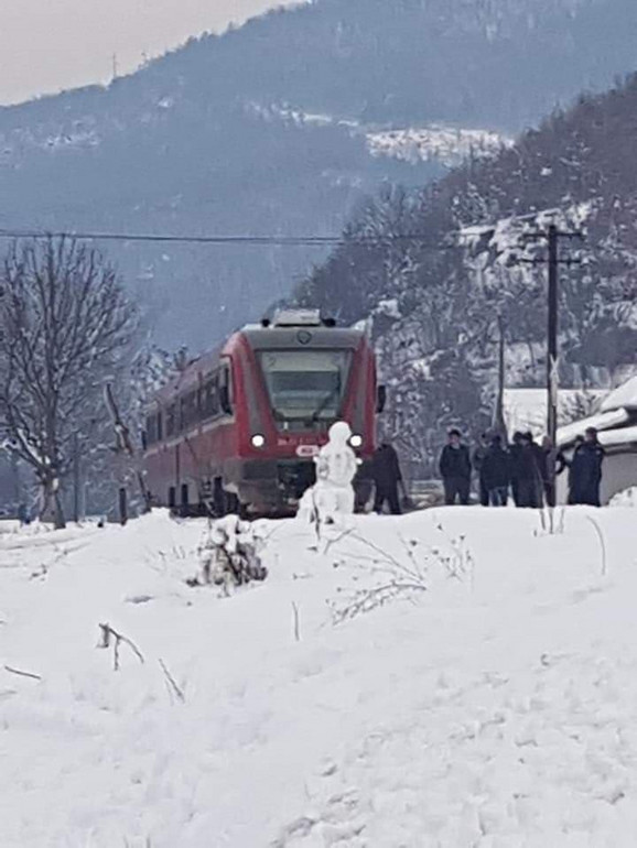 Возот што сообраќа на релацијата Ниш-Прокупле речиси дваесет минути стоеше вчера во близина на рампата и железничката станица во населбата Гариќ поради Снешко Белчо, кој бил направен на шините!